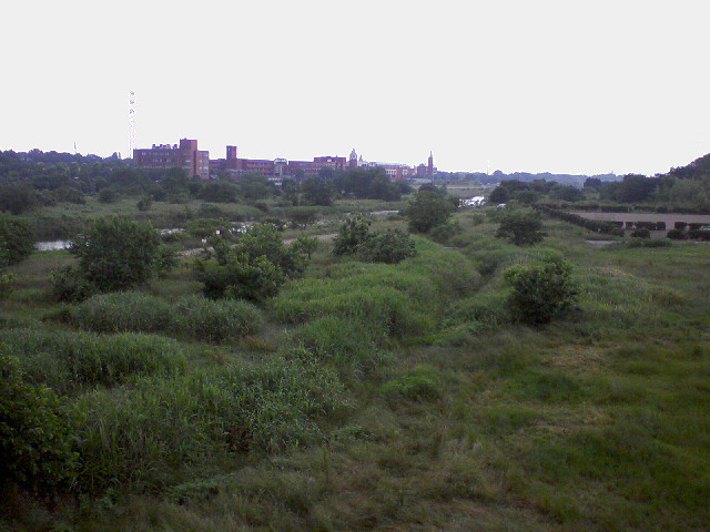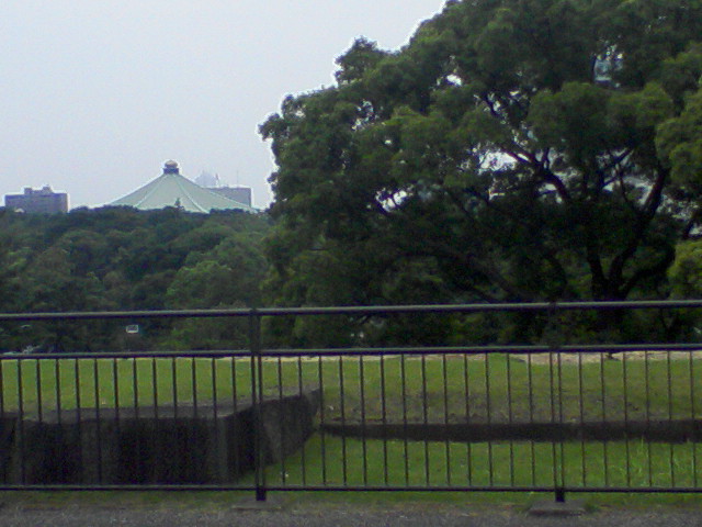 橋の上から、あの城っぽいのが、同高校と、大学です。
